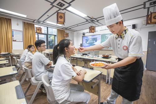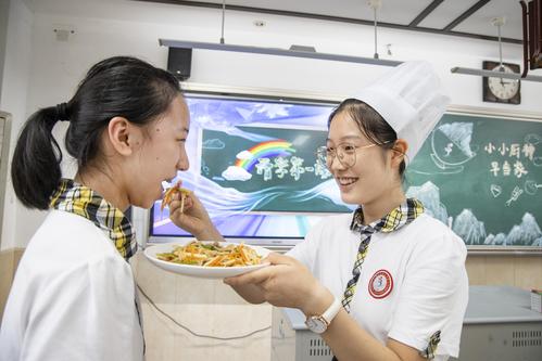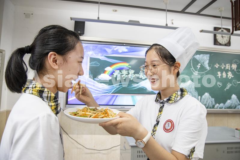 图片说明:2022年8月31日,江苏省镇江市第三中学八年级学生在开学第一课品尝同学的厨艺。