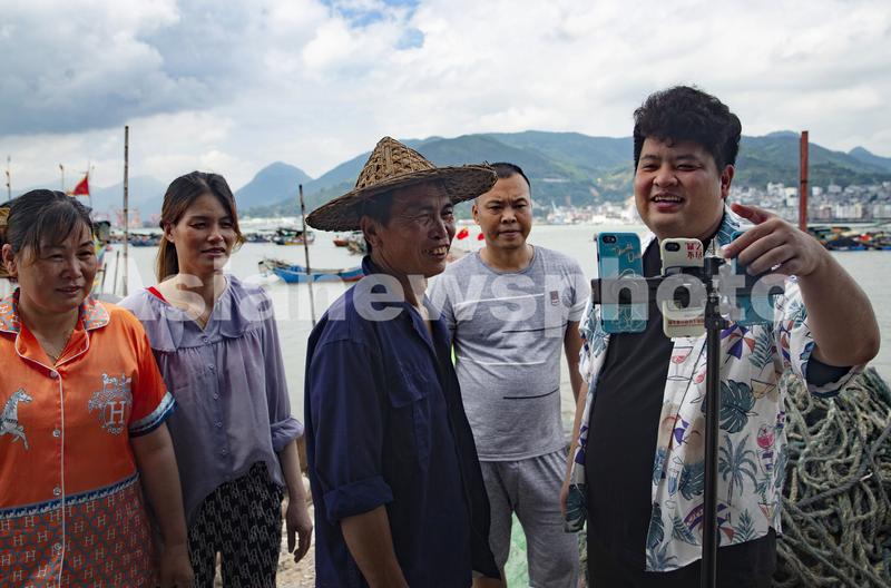 图片说明:6月30日,福建福安,1997年生的江建斌在大学期间就开始做直播,毕业后他放弃厦门的工作回下岐村创业,教渔民直播卖货,帮助他们创收。