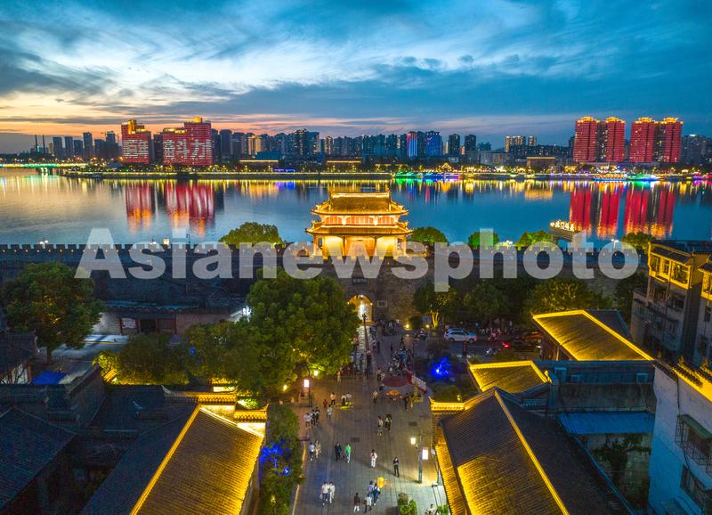图片说明:2022年9月1日,湖北省襄阳市,众多市民和游客在襄阳古城游玩,吃特色美食、拍照打卡,身临其境感受流光溢彩的古城夜景。