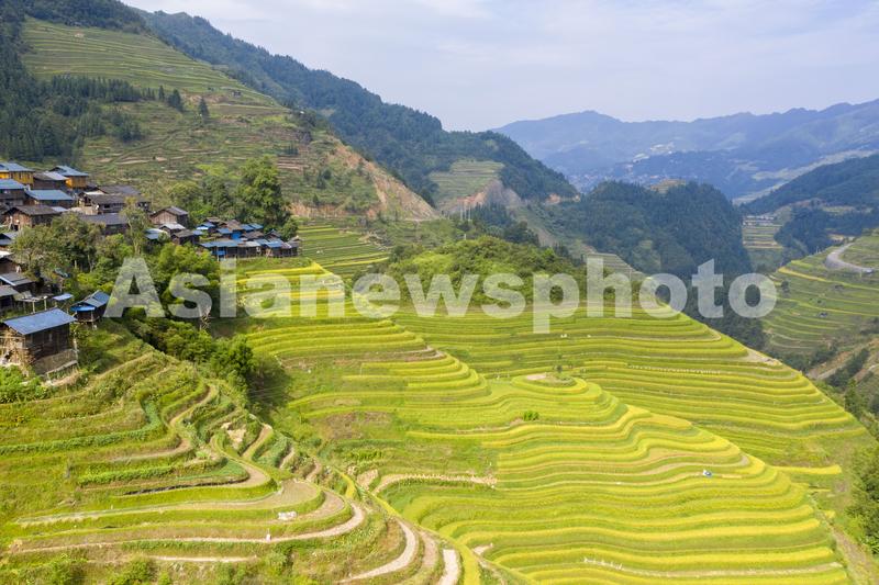 初秋时节,位于贵州省黔东南苗族侗族自治州从江县的月亮山梯田水稻进入成熟收割期,层层叠叠的梯田,放眼望去一片金黄,稻香扑面而来,宛若一幅幅美丽的丰收画卷。