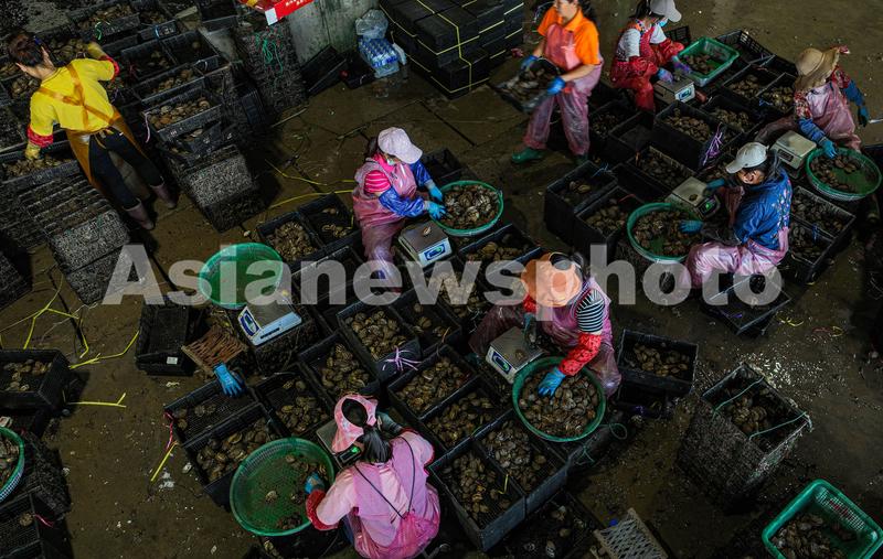 图片说明:2022年9月8日,在山东省荣成市俚岛镇沿海一处码头,养殖工人们在分拣鲍鱼。
