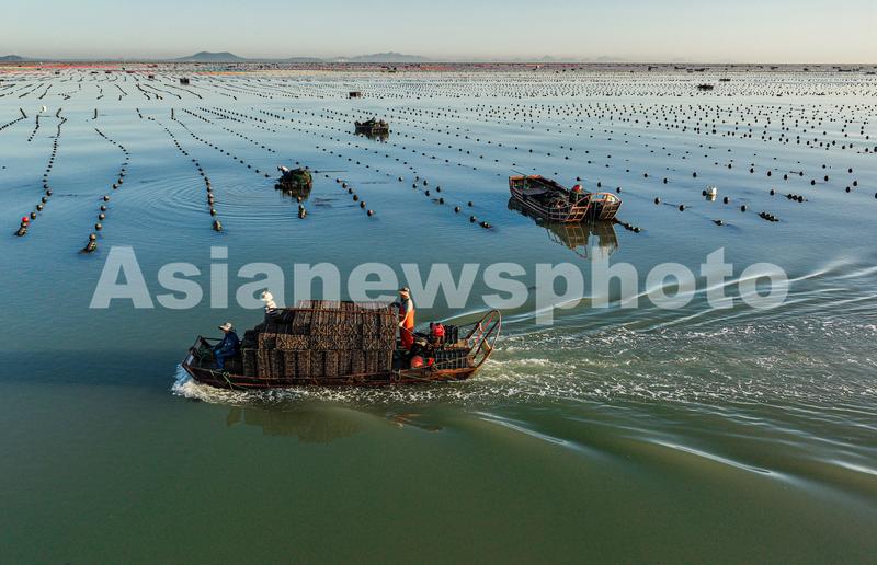 图片说明:2022年9月8日,在山东省荣成市俚岛镇沿海,养殖工人们驾驶满载鲍鱼的渔船返回码头。