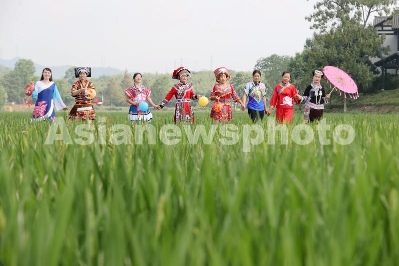 图片说明:2022年9月10日,在浙江省湖州市德清县阜溪街道郭肇村,少数民族同胞表演稻田对歌。