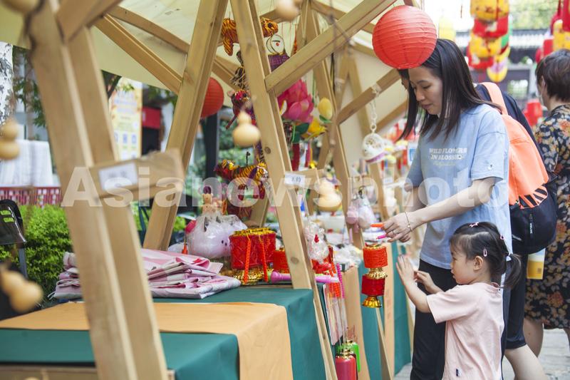2022年9月11日,游客在南京熙南里历史文化街区的笪桥灯市游玩。当日是中秋节小长假第二天,不少游客来到南京熙南里历史文化街区的笪桥灯市,逛街选灯赏美景,快乐度假。
