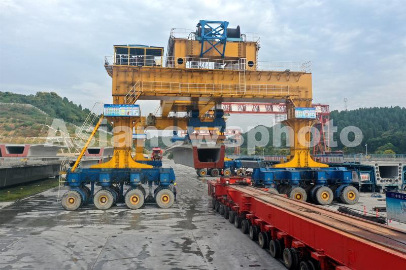 2022年9月8日,位于湖北省宜昌市夷陵区岩花村的郑渝高铁宜昌至兴山联络线制梁场段正在加紧施工(无人机航拍图片)。
