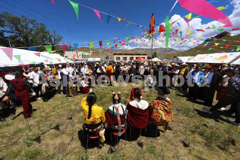 图片说明:8月8日,新郎尕玛久美和新娘扎西曲忠的藏族婚礼在青海省玉树藏族自治州囊谦县巴米村举行。