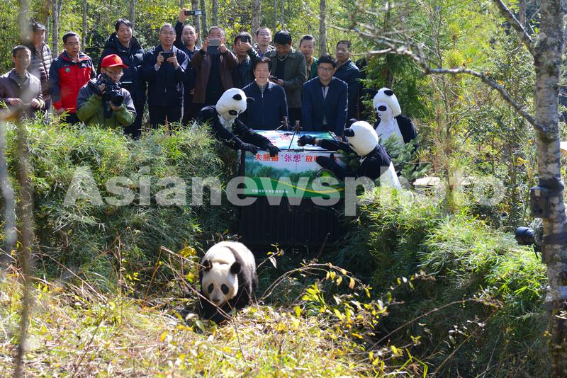 2013年11月6日,2岁的大熊猫“张想”在四川省雅安市栗子坪自然保护区爬出放归笼。据悉,大熊猫“张想”目前是全球首只雌性大熊猫放归大自然。