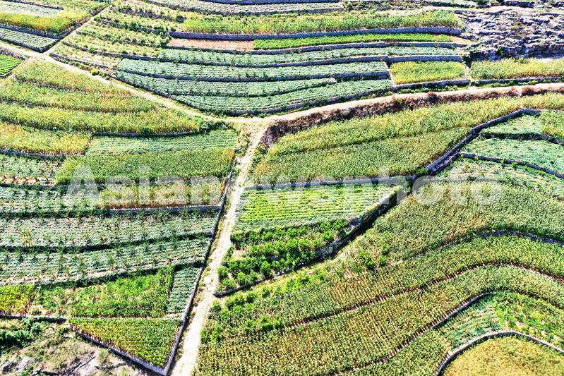9月7日,山东枣庄山亭区王庄村山坡上多彩的梯田。
