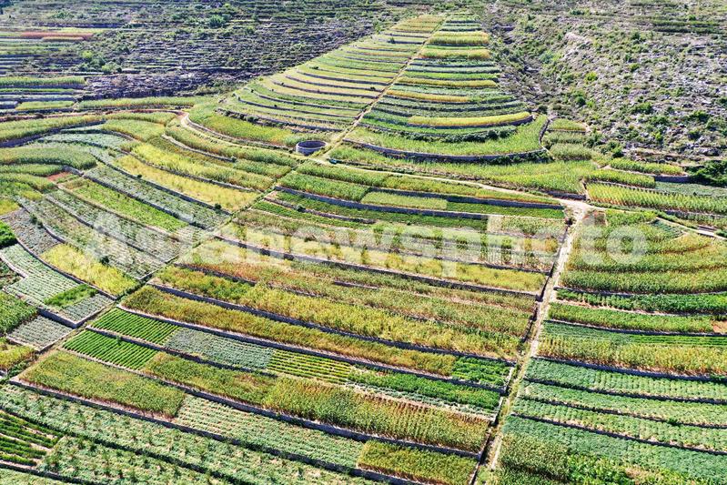 9月7日,山东枣庄山亭区王庄村山坡上多彩的梯田。
