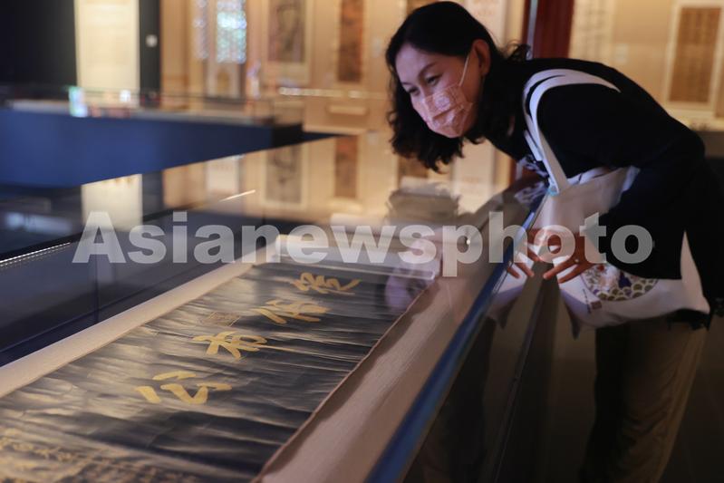 图片说明:大禅堂内,观众在欣赏乾隆帝御笔书法卷。