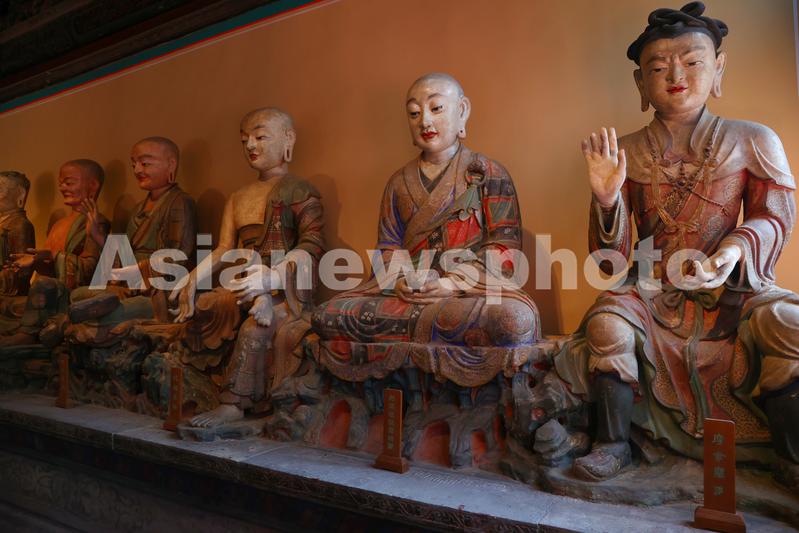 图片说明:大雄宝殿内的佛造像。这些佛像已经完成了全面体检、除尘处理、探查病害,并按照“修旧如旧”的原则完成了加固保护。