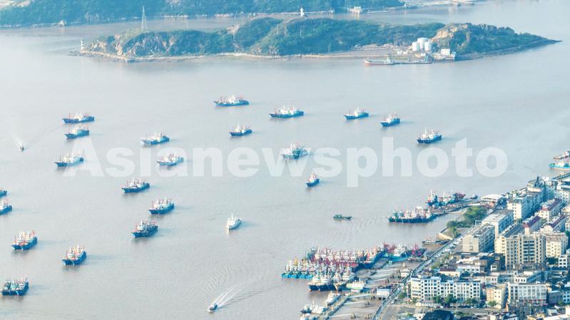 2022年9月16日,大批渔船列队从全国六大中心渔港之一的浙江宁波象山石浦渔港驶出,准备入海。
