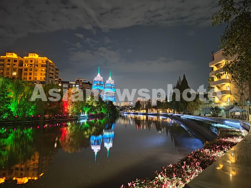 图片说明:2022年9月22日,上海,苏州河滨河步道华政(华东政法大学)、中山公园段整体升级工程完工,历史老建筑与时尚环球港购物中心在光影映衬下具有时空穿越的魅力。