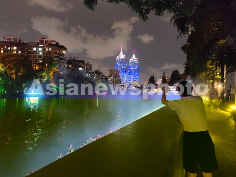 图片说明:2022年9月22日,上海,苏州河滨河步道华政(华东政法大学)、中山公园段整体升级工程完工,游客居民有了全新的漫步健身打卡地,河边的水雾夜景灯光秀让原本优雅的环境多了一分朦胧美。