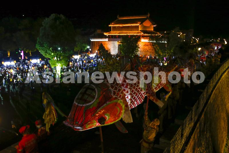 2022年9月23日,鱼灯表演队伍在安徽省黄山市歙县徽州古城内巡游。