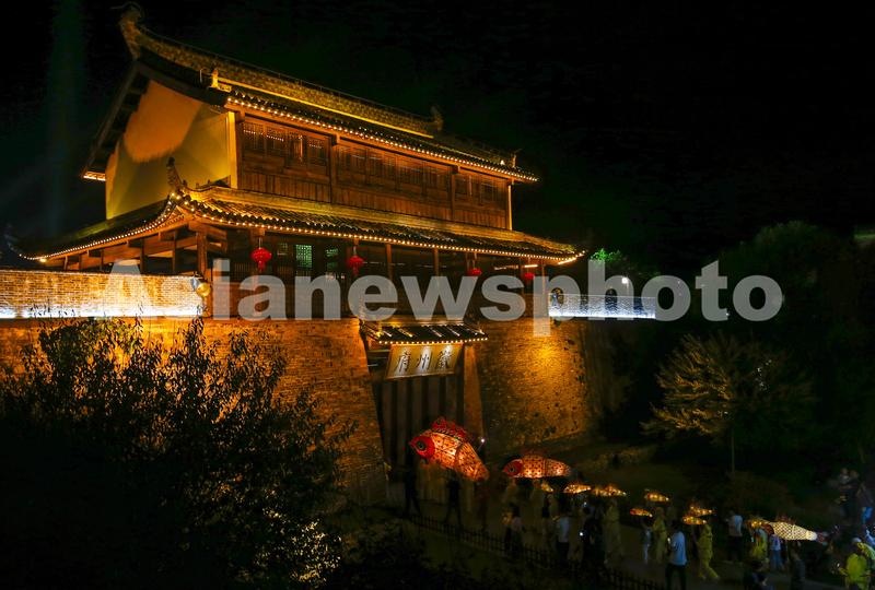 2022年9月23日,鱼灯表演队伍在安徽省黄山市歙县徽州古城内巡游。