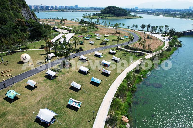 今年国庆假期,杭州铜鉴湖景区将部分湖畔草坪开辟为露营地, 吸引不少市民游客前来“微度假”,乐享国庆假期。