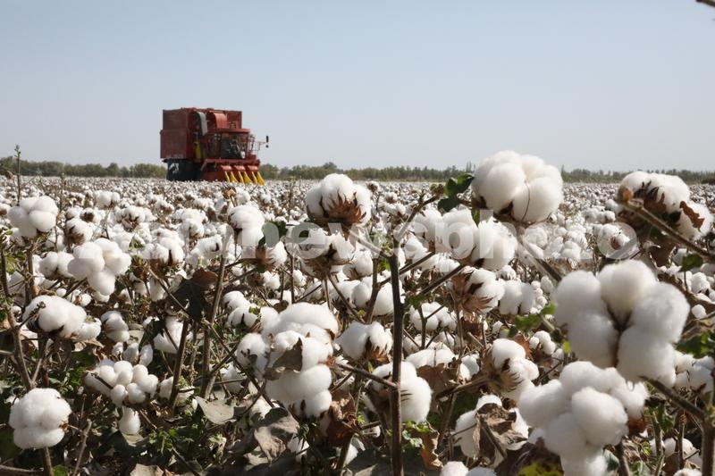 图片说明:国产采棉机在新疆生产建设兵团第一师二团棉田作业(2022年9月28日摄)。