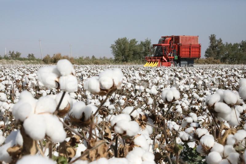 图片说明:国产采棉机在新疆生产建设兵团第一师二团棉田作业(2022年9月28日摄)。