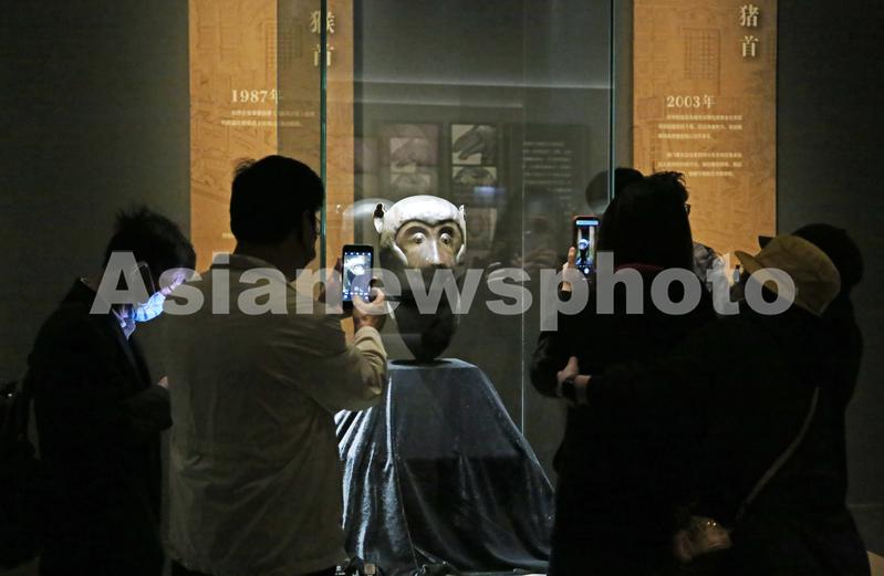 2022年10月12日,上海,闵行博物馆“盛世回归—海外回流文物特展”中的珍贵国宝(圆明园十二生肖兽首铜像猴首)吸引游客。