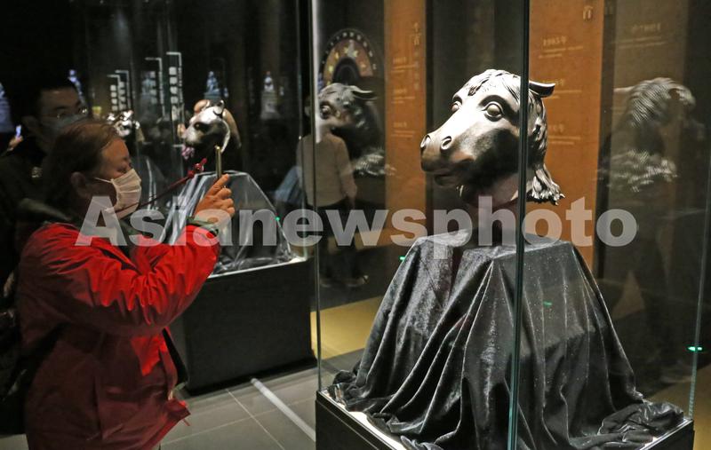 2022年10月12日,上海,闵行博物馆“盛世回归—海外回流文物特展”中的珍贵国宝(圆明园十二生肖兽首铜像马首)吸引游客。