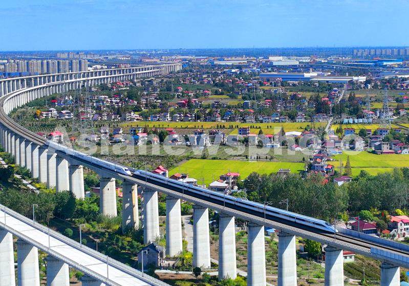 江苏南通:沪苏通铁路动车组列车交汇