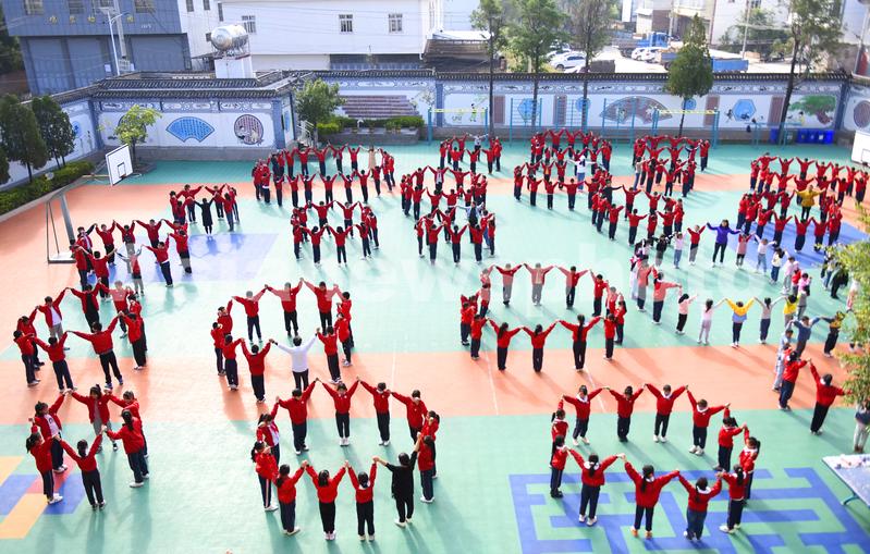 2022年10月20日,云南省大理州巍山县南诏镇鸡碧小学学生在大课间上进行彝族打歌活动。近年来,云南省大理白族自治州巍山彝族回族自治县全面贯彻落实国家教育“双减”政策,将彝族打歌、啦啦操等体育活动融入大课间,广泛开展书法、武术、乐器等兴趣爱好活动,通过开展丰富多彩的大课间,加强学生体育锻炼,丰富校园文化生活,让学生健康快乐成长。