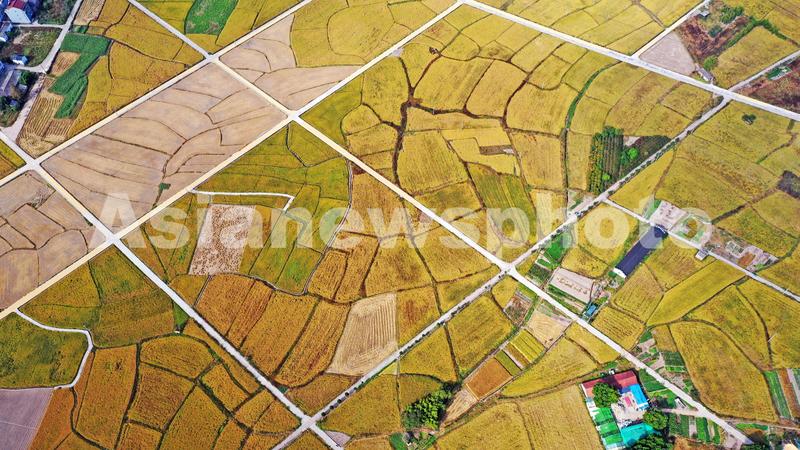 图片说明:2022年10月22日,浙江省台州市仙居县白塔镇农田成片金黄的水稻与村庄、阡陌纵横的道路交织在一起,勾勒出一幅田园丰收、乡村美丽新画卷。