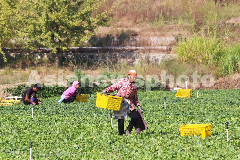 2022年10月22日,湖南省永州市新田县东升农场,菜农在采收蔬菜,供应粤港澳大湾区。
