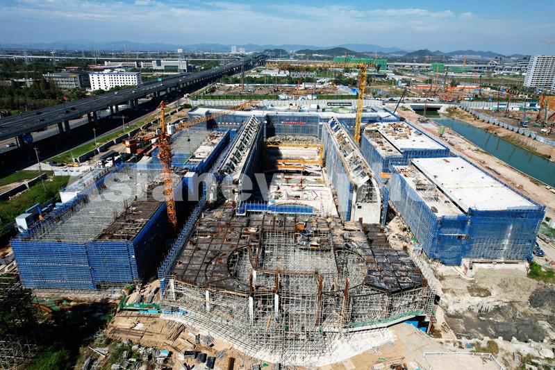 2022年10月26日,从空中俯瞰正在建设的国家重大科技基础设施浙江学大超重力离心模拟与实验装置(CHIEF)。