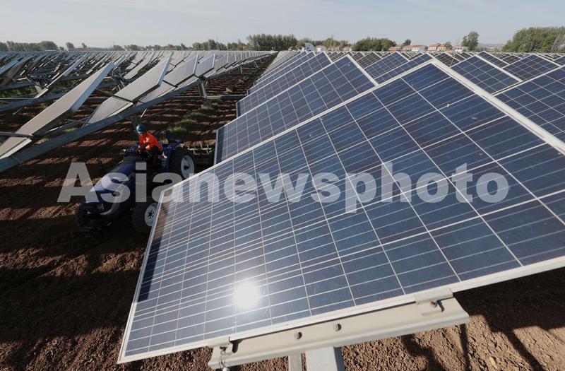 图片说明:9月5日,湖北宜城市王集镇观音村500余亩“农光互补”光伏电站的光伏板下,农户利用晴好天气播种娃娃菜。