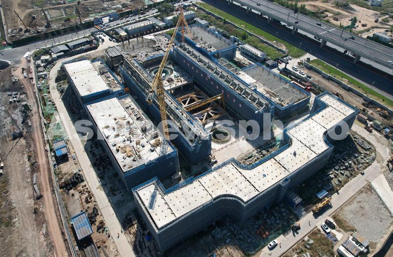 2022年10月26日,从空中俯瞰正在建设的国家重大科技基础设施浙江学大超重力离心模拟与实验装置(CHIEF)。