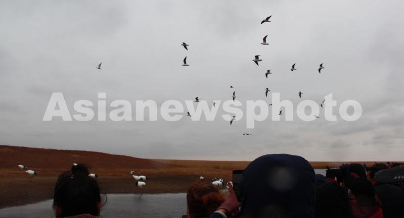 图片说明:2022年10月26日,黑龙江齐齐哈尔,游客在扎龙湿地赏鸟。