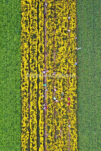 2022年10月30日,安徽省亳州市谯城区牛集镇韩高楼村的菊农在田间采摘金丝黄菊。近年来,安徽省亳州市坚持党建引领,采取“合作社+基地+农户”的种植模式,引导农民大力发展菊花等中药材种植,把菊花加工成花茶、饮料等高附加值产品,实现农业增效,农民增收。