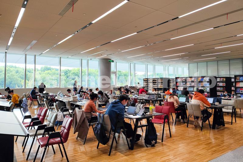 图片说明:2022年11月1日,上海,读者在上海图书馆东馆内阅读、学习。