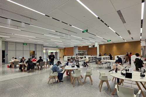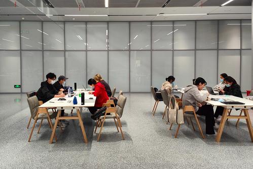 图片说明:2022年11月1日,上海,读者在上海图书馆东馆内阅读、学习。