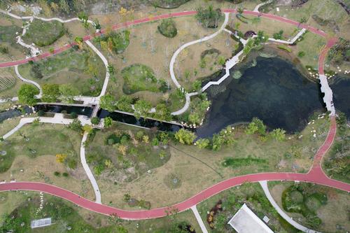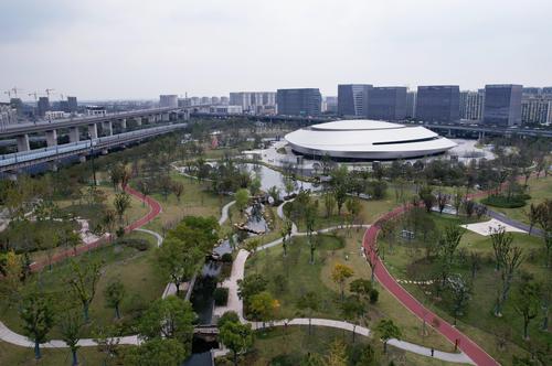 图片说明:2022年11月2日,从空中俯瞰杭州北景园电竞生态公园。