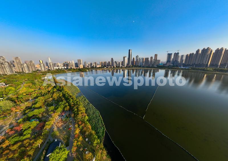这是11月2日拍摄的武汉武昌沙湖湿地公园秋色(无人机照片)。