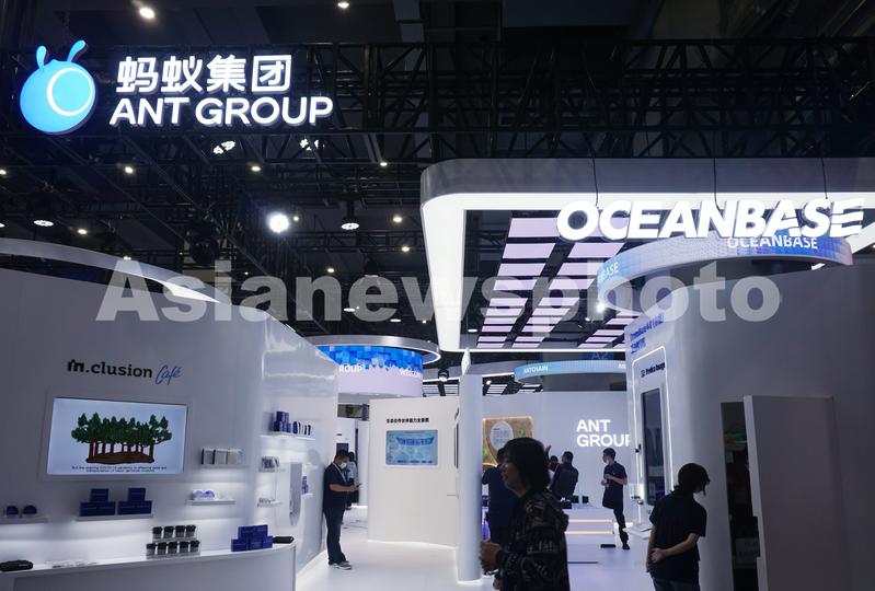 2022年11月3日,观众在2022杭州云栖大会上参观蚂蚁集团的展厅。
