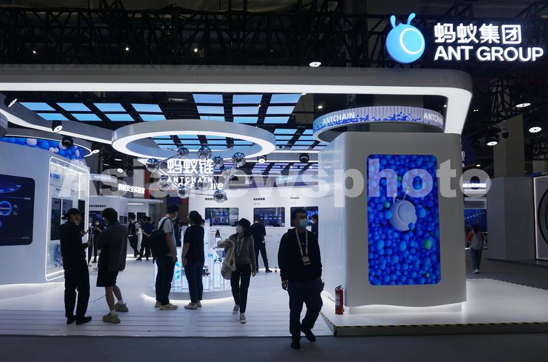 2022年11月3日,观众在2022杭州云栖大会上参观蚂蚁集团的展厅。