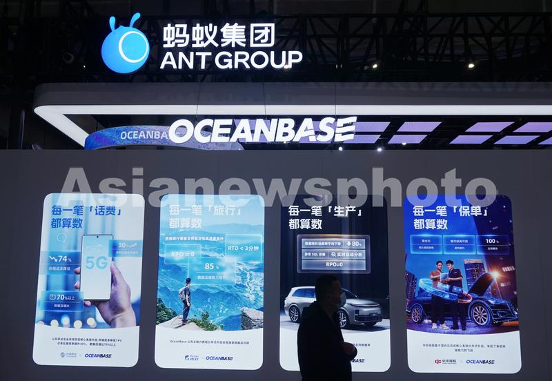 2022年11月3日,观众在2022杭州云栖大会上参观蚂蚁集团的展厅。