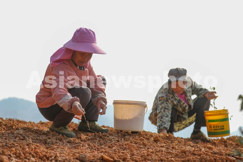 2022年11月7日,在贵州省黔东南苗族侗族自治州岑巩县天马镇天马村,村民在种植太子参。