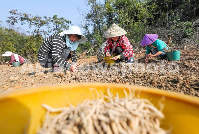 2022年11月7日,在贵州省黔东南苗族侗族自治州岑巩县天马镇天马村,村民在种植太子参。