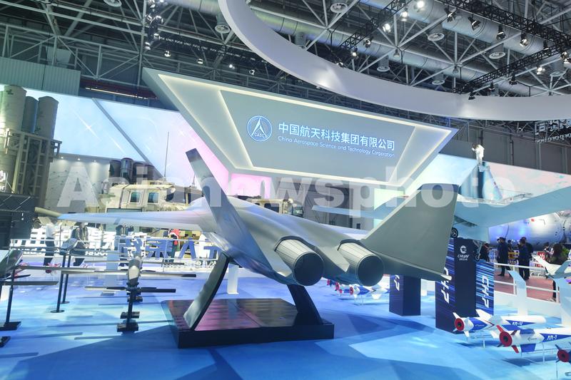 2022年11月6日,在2022中国航展媒体探访日拍摄到的“飞鸿-97A”隐身无人机模型。