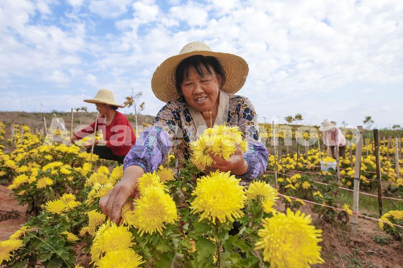 图片说明:2022年11月11日,菊农在安徽黄山市徽州区潜口镇采摘金丝皇菊。