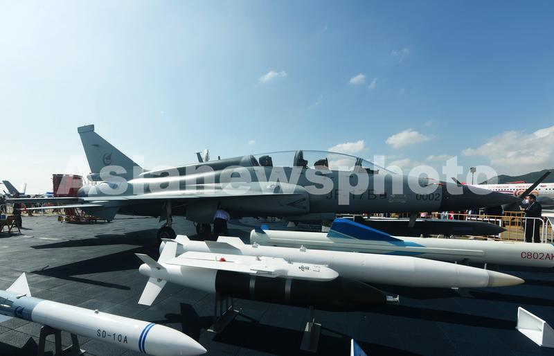 图片说明:2022年11月9日,在中国航展上拍摄到的“枭龙”双座型战斗教练机。