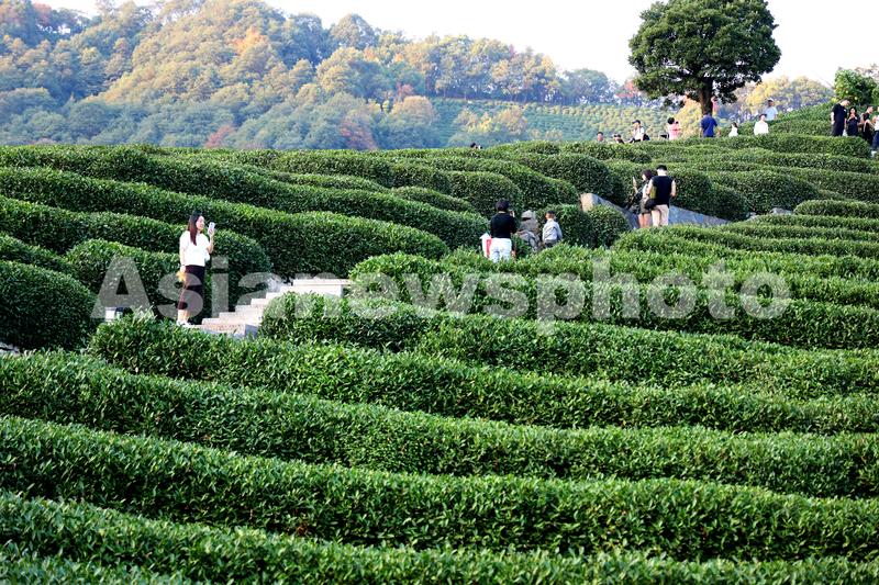 图片说明:2022年11月12日,游客在浙江省杭州市西湖区古村落龙井村初冬高山生态茶园游览。