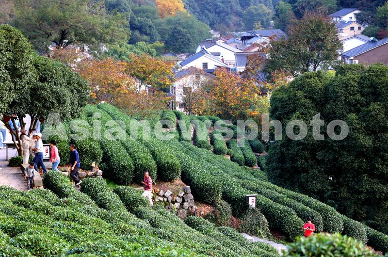 图片说明:2022年11月12日,游客在浙江省杭州市西湖区古村落龙井村初冬高山生态茶园游览。