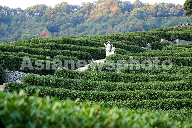 图片说明:2022年11月12日,游客在浙江省杭州市西湖区古村落龙井村初冬高山生态茶园游览。