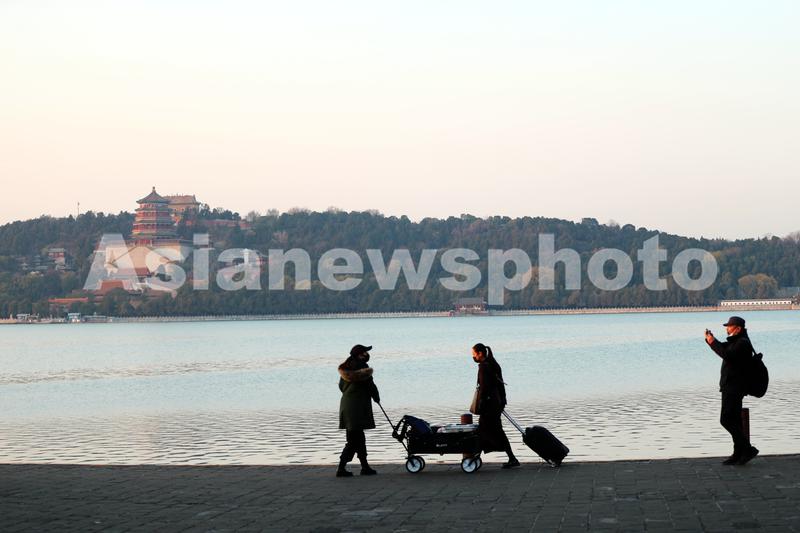 图片说明:2022年11月14日,游客在北京颐和园内游览。